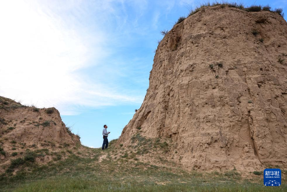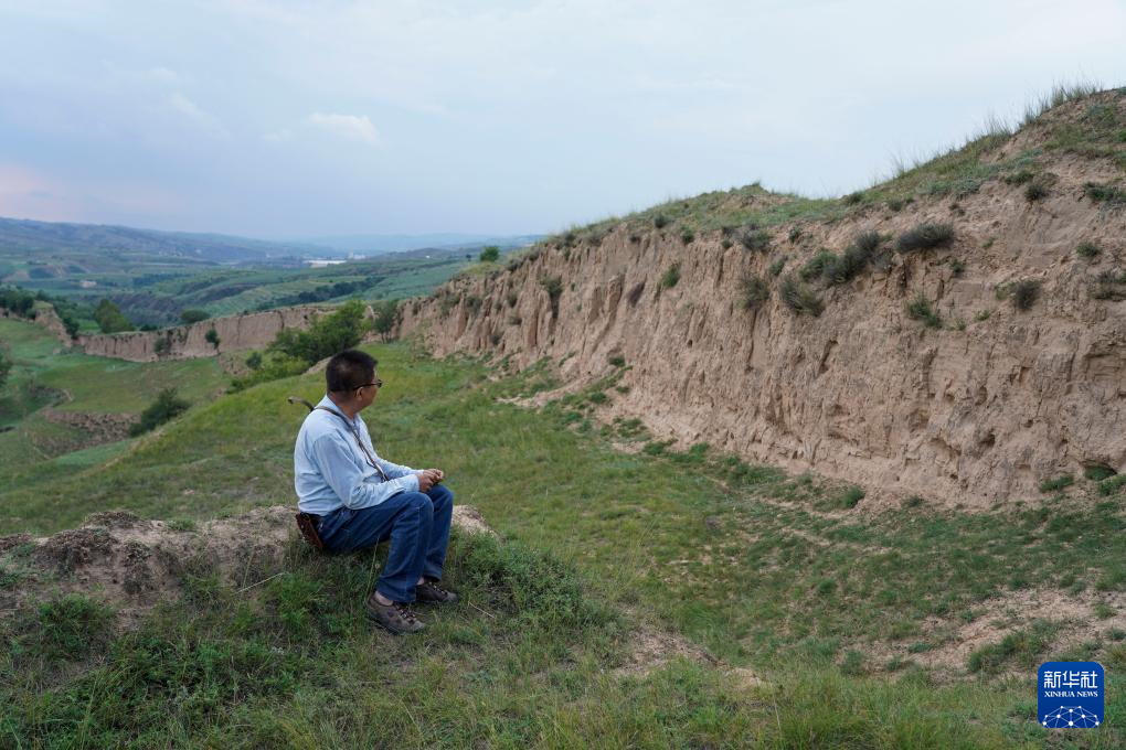 在偏关县老营堡附近的一段长城考察间隙,吕成贵凝望着长城(8月28日摄)。