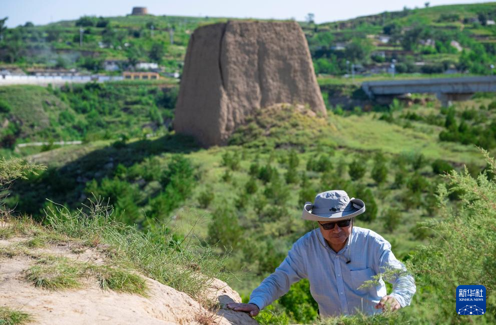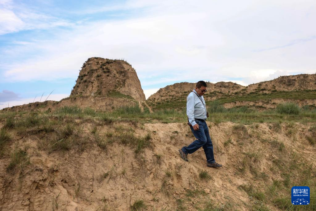 吕成贵向偏关县老营堡附近的一座墩台走去(8月28日摄)。