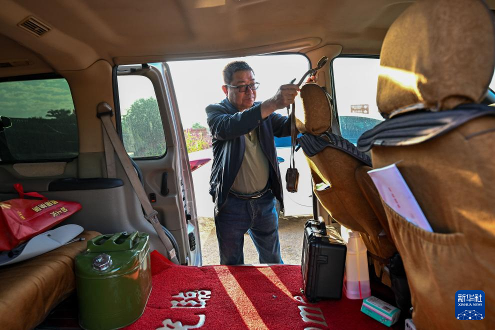 在偏关县老牛湾村,吕成贵一早收拾妥当,准备前往滑石涧堡考察寻访(8月29日摄)。