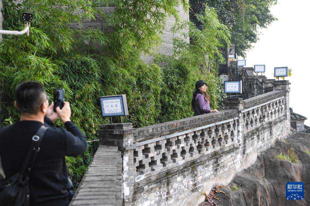 12月24日,游客在重庆龙门浩老街游览、拍照。