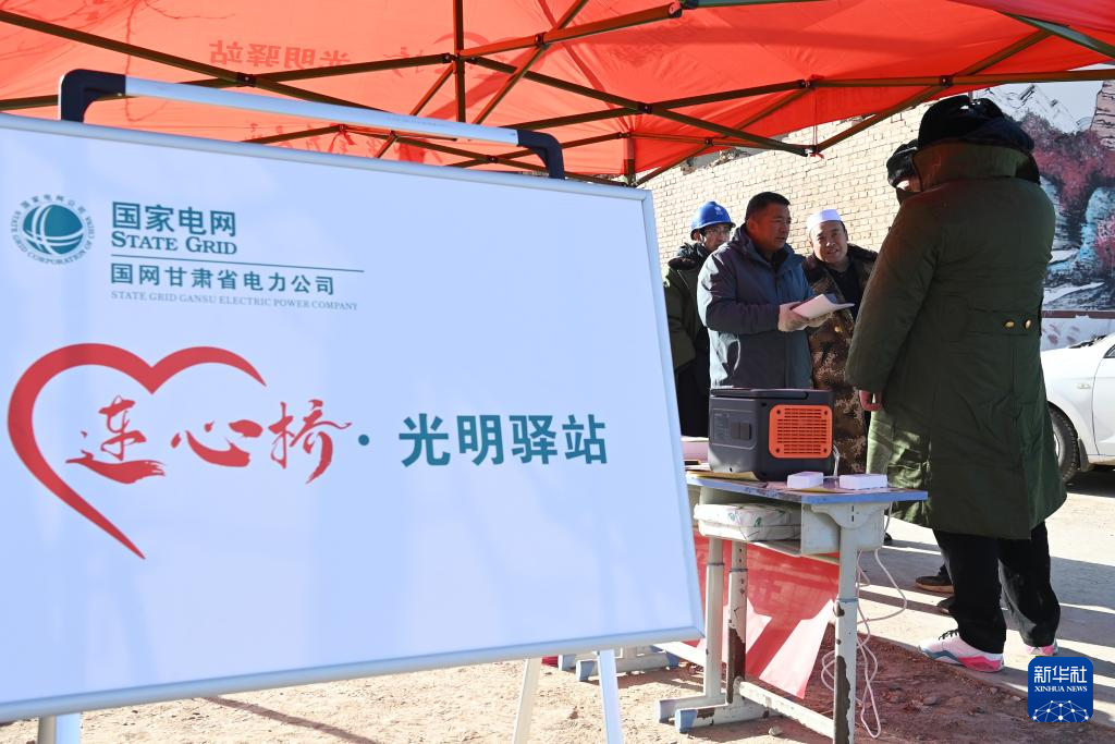 12月24日,在积石山县刘集乡高李村安置点,国家电网甘肃省电力公司职工为灾区群众提供服务。