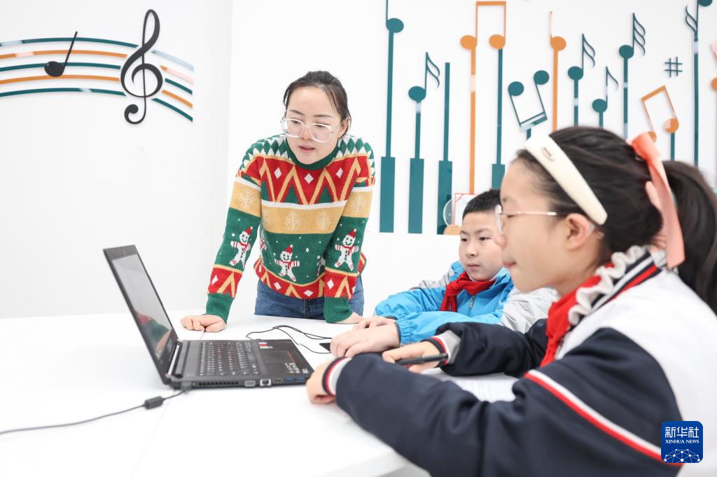 在新疆生产建设兵团第二中学第十一师分校,信息科技教师金凤在辅导学生(12月19日摄)。金凤是学校接受天津援疆教师“传帮带”的青年教师之一。