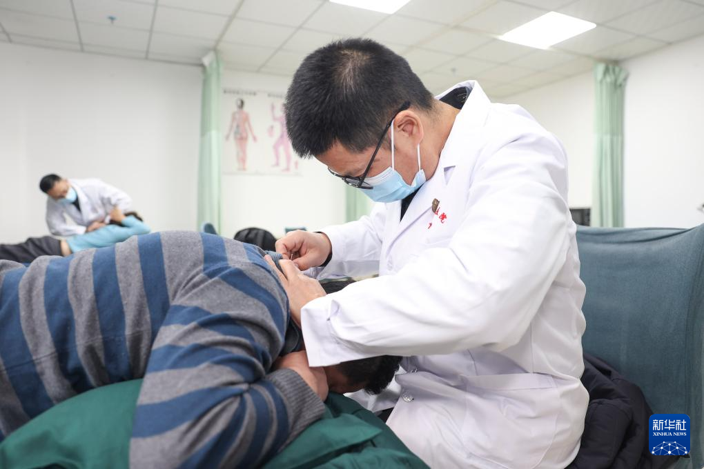 在新疆生产建设兵团医院第十一师分院,医生张国栋为患者进行治疗(12月19日摄)。得益于援疆项目,张国栋在今年7月前往天津市第一人民医院中医科,接受为期三个月的培训学习。