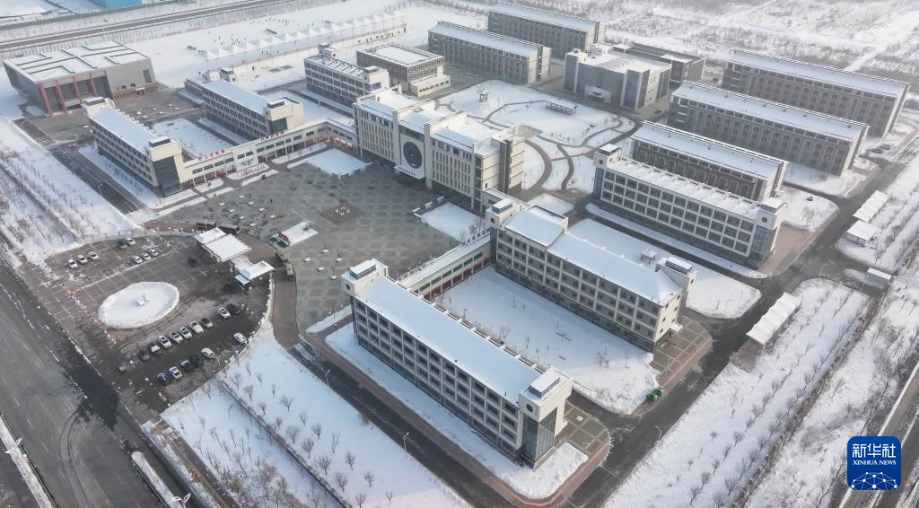这是由江苏援建的新疆生产建设兵团第七师胡杨河市第一中学(12月23日摄,无人机照片)。