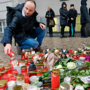12月23日,市民在捷克首都布拉格枪击事件现场附近悼念遇难者。
