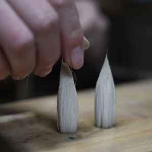 宣笔具有“装潢雅致、毛纯耐用、刚柔适中、尖圆齐健”的独特风格,它的制作技艺于2008年被列入国家级非物质文化遗产保护名录。2013年,26岁的佘吉辞去上海的工作,回到家乡安徽省宣城市泾县跟随父亲、宣笔制作技艺国家级非遗传承人佘征军学习。十余年来,佘吉苦练宣笔制作技艺,并协助父亲创办了“守艺人”工作室、开起了网店。如今,佘吉也成为宣笔制作技艺市级非遗传承人。精进技艺的同时,佘吉不断创新,致力于让宣笔设计生产更加标准化,并根据市场需求不断让产品推陈出新。“未来,我们要多开发适合大众消费者的产品,让更多人了解、用上宣笔,”佘吉说,“这样才能吸引更多年轻人进入这个行业,非遗才能更好地传承下去。”