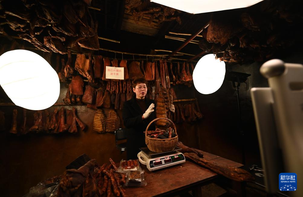 12月24日,陕西省汉中市镇巴县兴隆镇一间食品加工作坊的创始人文光琴在直播带货。
