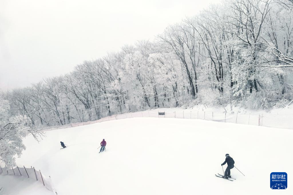 滑雪爱好者在吉林省吉林市万科松花湖度假区滑雪(11月24日摄)。