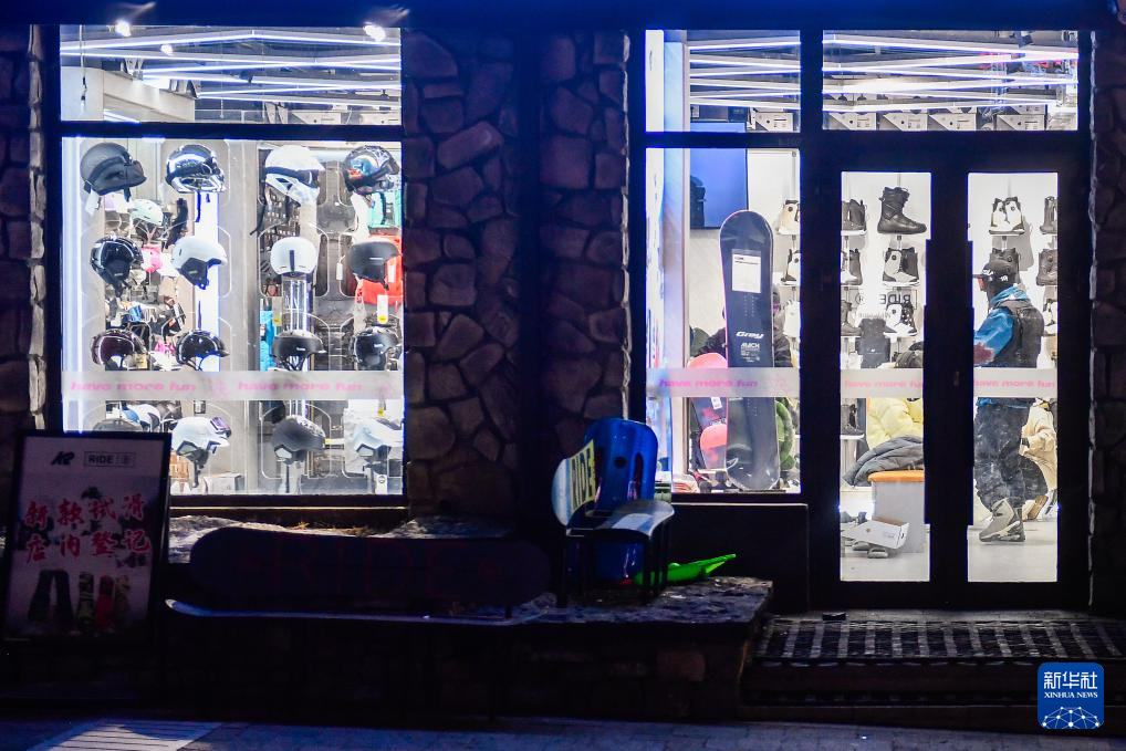 滑雪爱好者在吉林省吉林市万科松花湖度假区一家雪具店内选购滑雪装备(12月14日摄)。