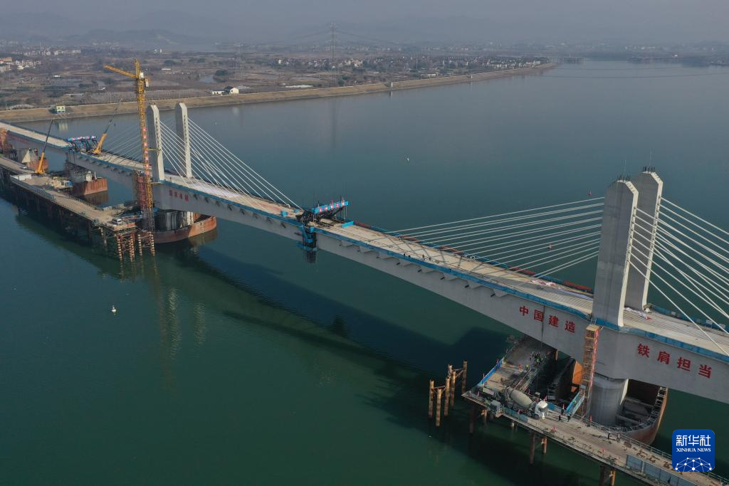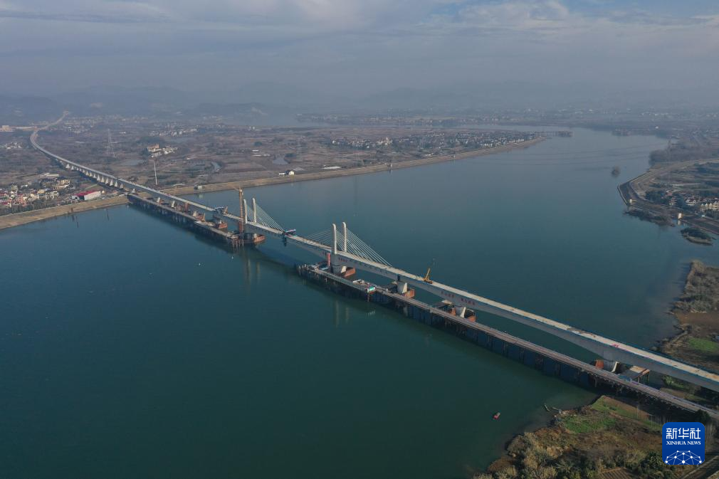 12月26日拍摄的由中铁三局承建的金建铁路兰江特大桥主跨(无人机照片)。