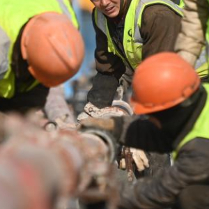 12月26日,中铁三局建设者在金建铁路兰江特大桥上作业。