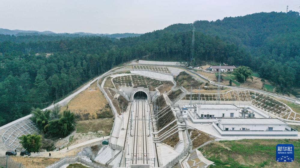这是12月18日拍摄的成自宜高铁白云山隧道,该隧道由中铁十二局承建,是成自宜高铁全线最长的隧道(无人机照片)。