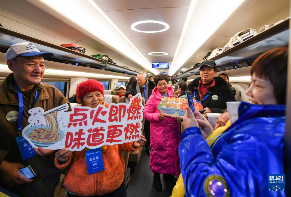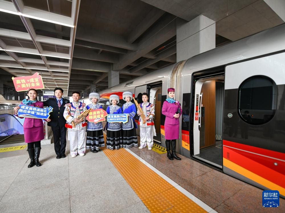 12月26日,当地群众和首发列车乘组在成自宜高铁宜宾站站台合影留念。
