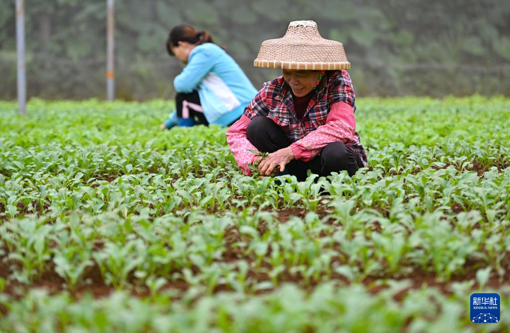 12月26日,在海南省海口市琼山区云裕村,农民在菜地除草。