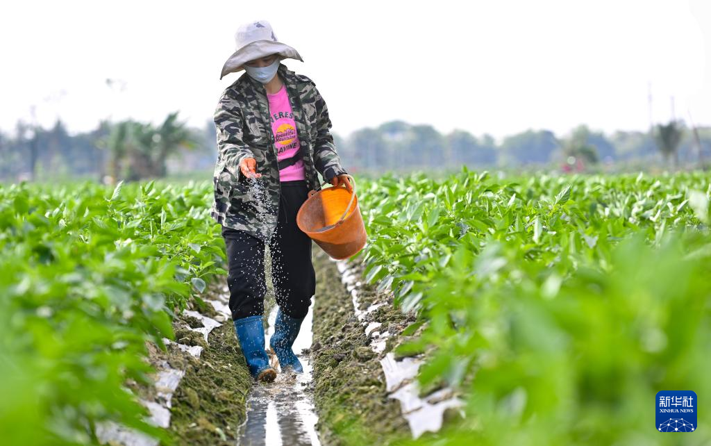 12月26日,在海南省澄迈县金安农场,农民在菜地施肥。