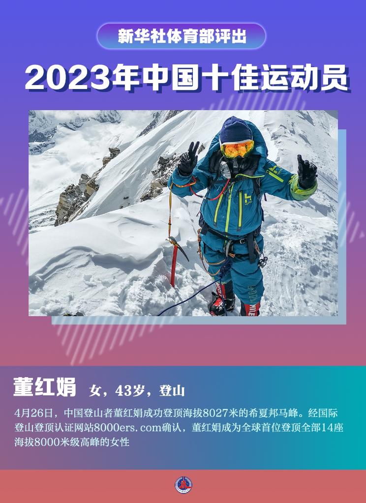 4月26日,中国登山者董红娟成功登顶海拔8027米的希夏邦马峰。经国际登山登顶认证网站8000ers.com确认,董红娟成为全球首位登顶全部14座海拔8000米级高峰的女性。