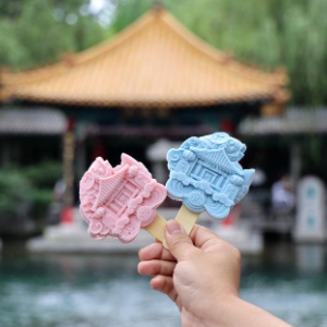 7月16日在山东省济南市趵突泉景区拍摄的趵突泉造型文创雪糕。各具特色的文创雪糕在炎炎夏日里受到人们欢迎。