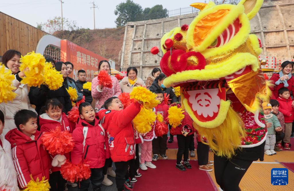12月27日,四川省遂宁市大英县青狮路幼儿园的孩子们舞龙、舞狮、跳新年舞。