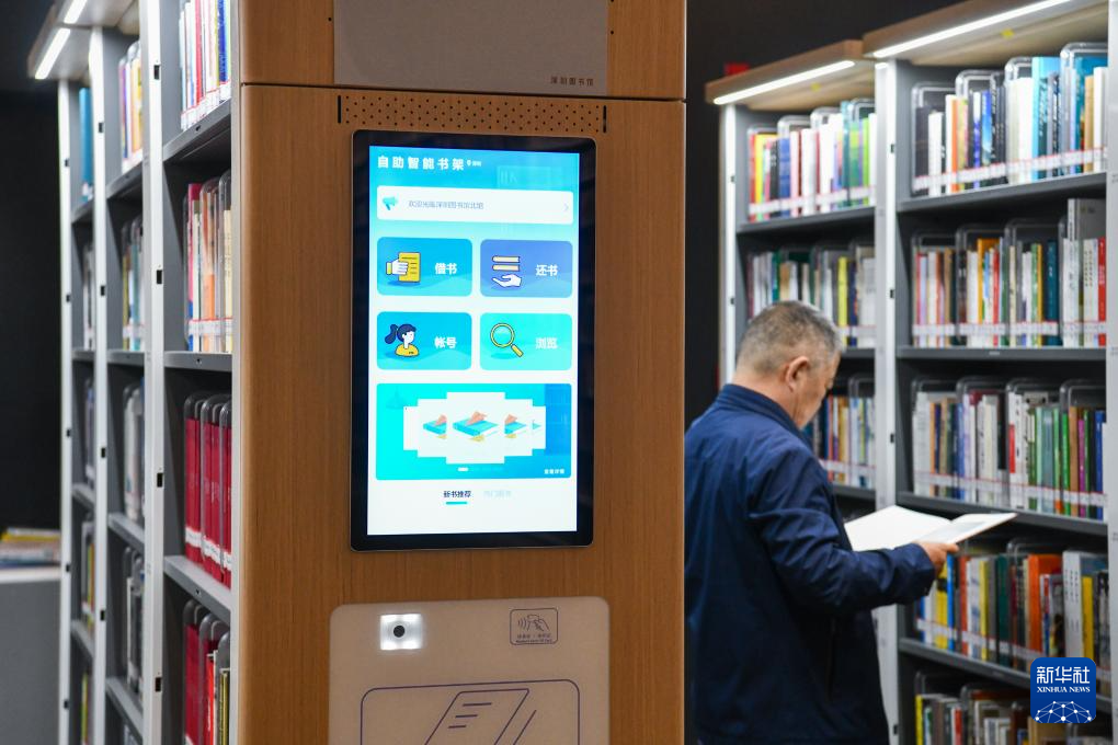 这是12月28日拍摄的深圳图书馆北馆的自助智能书架。