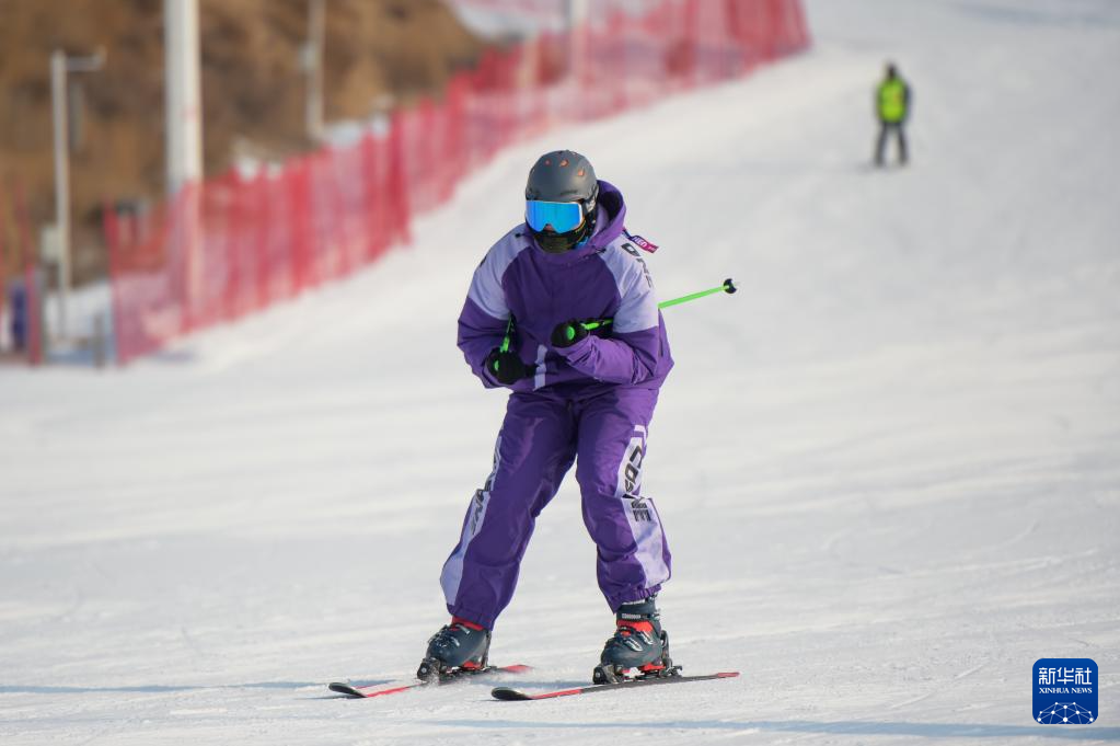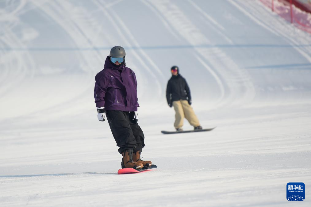 12月27日,游客在呼和浩特市马鬃山滑雪场体验滑雪。