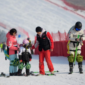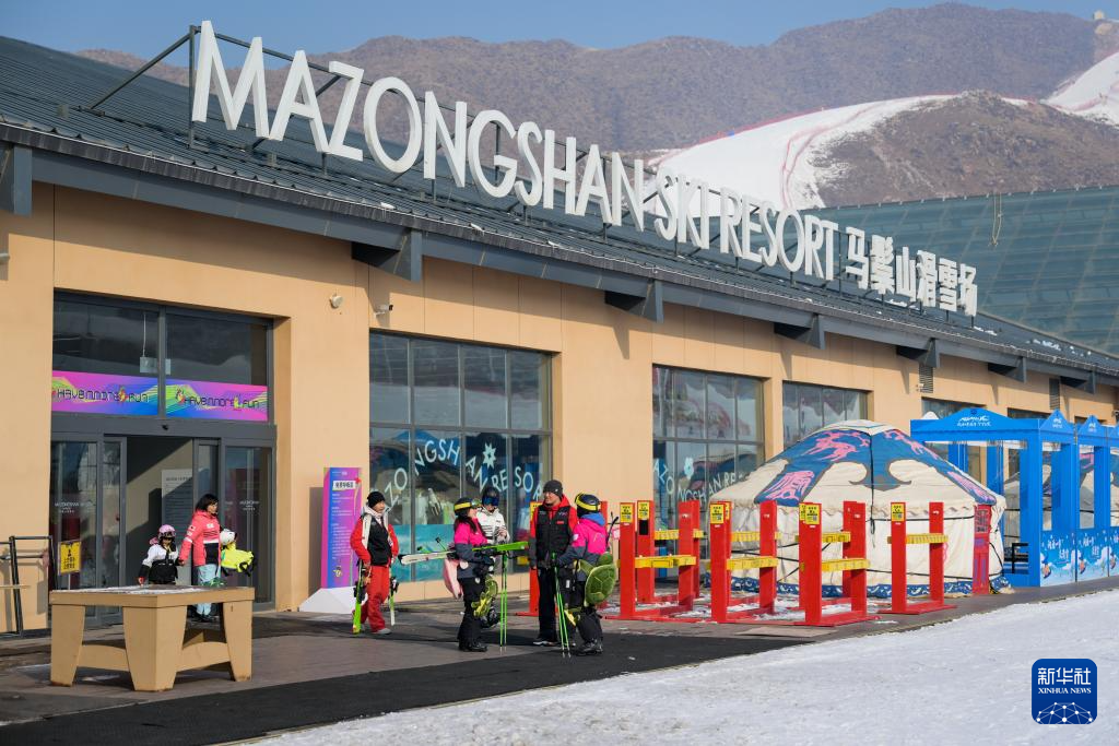 12月27日,游客在呼和浩特市马鬃山滑雪场交流,准备体验滑雪。