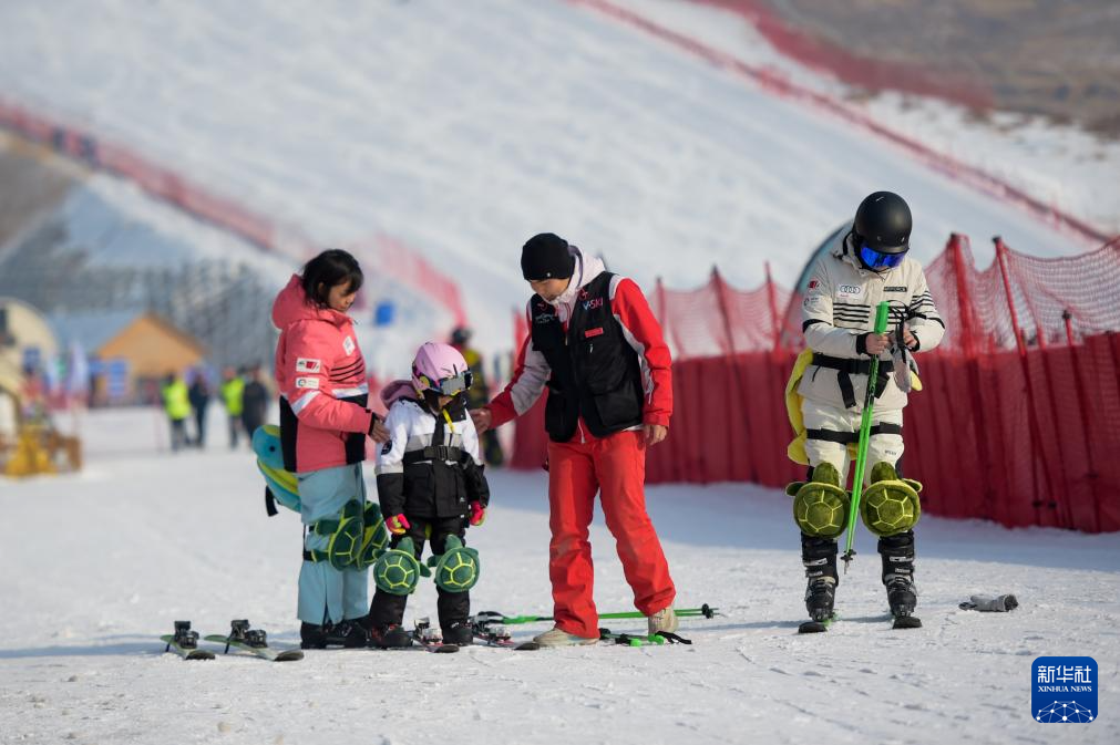 12月27日,游客在呼和浩特市马鬃山滑雪场穿戴雪具。