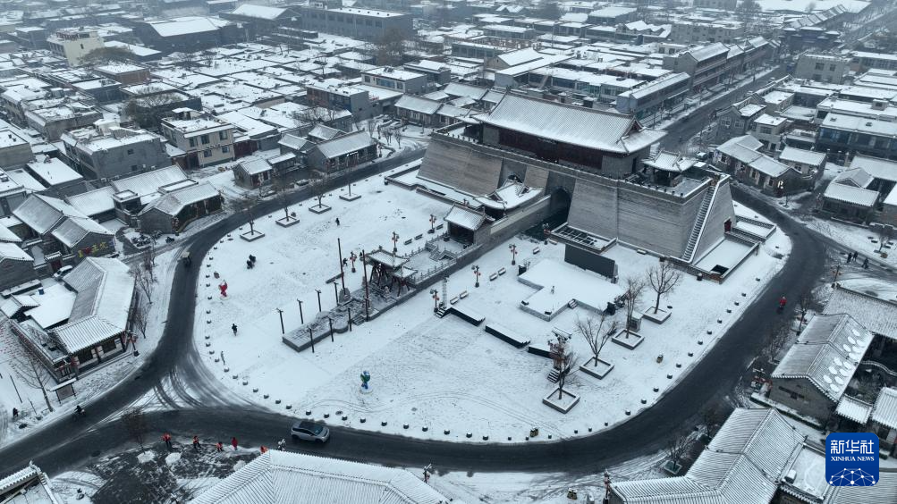 12月13日拍摄的河北石家庄正定古城雪景(无人机照片)。