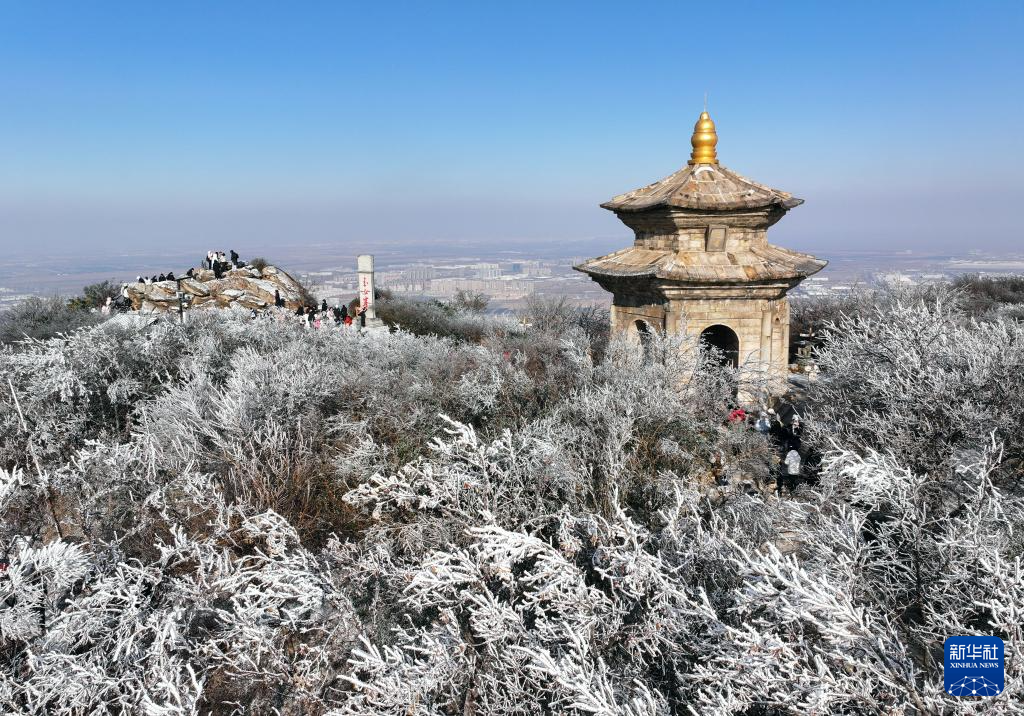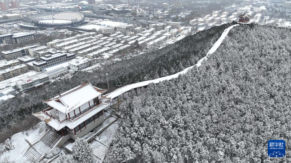 12月11日拍摄的济南市英雄山风景区雪景(无人机照片)。