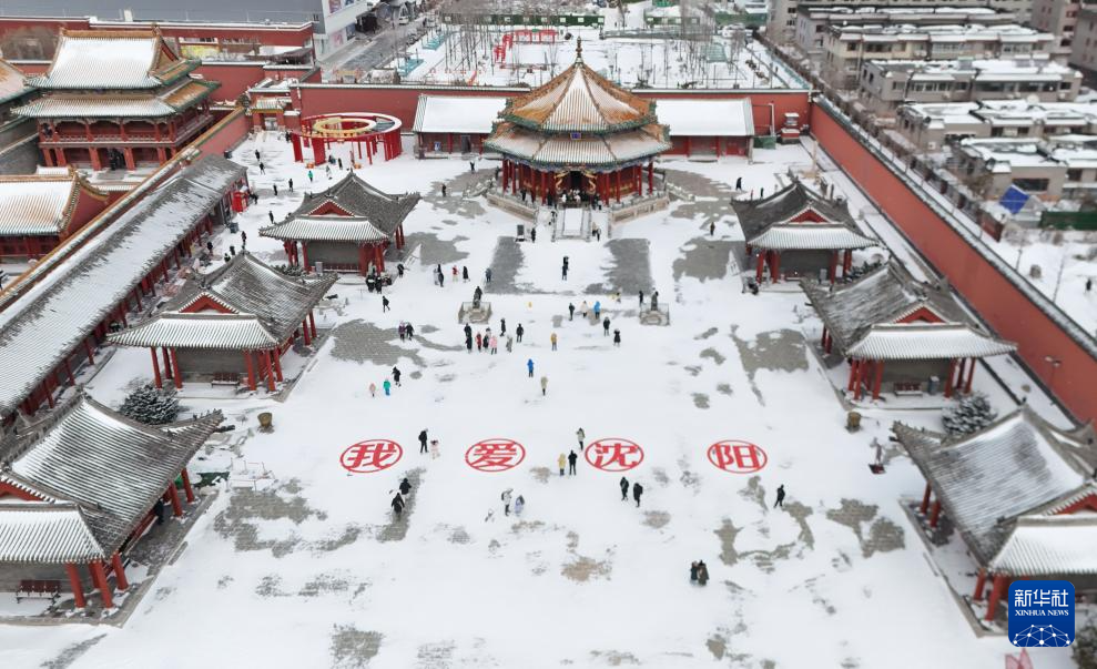 12月15日拍摄的沈阳故宫雪景(无人机照片)。