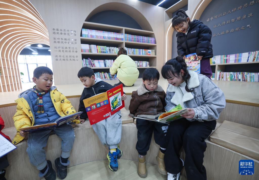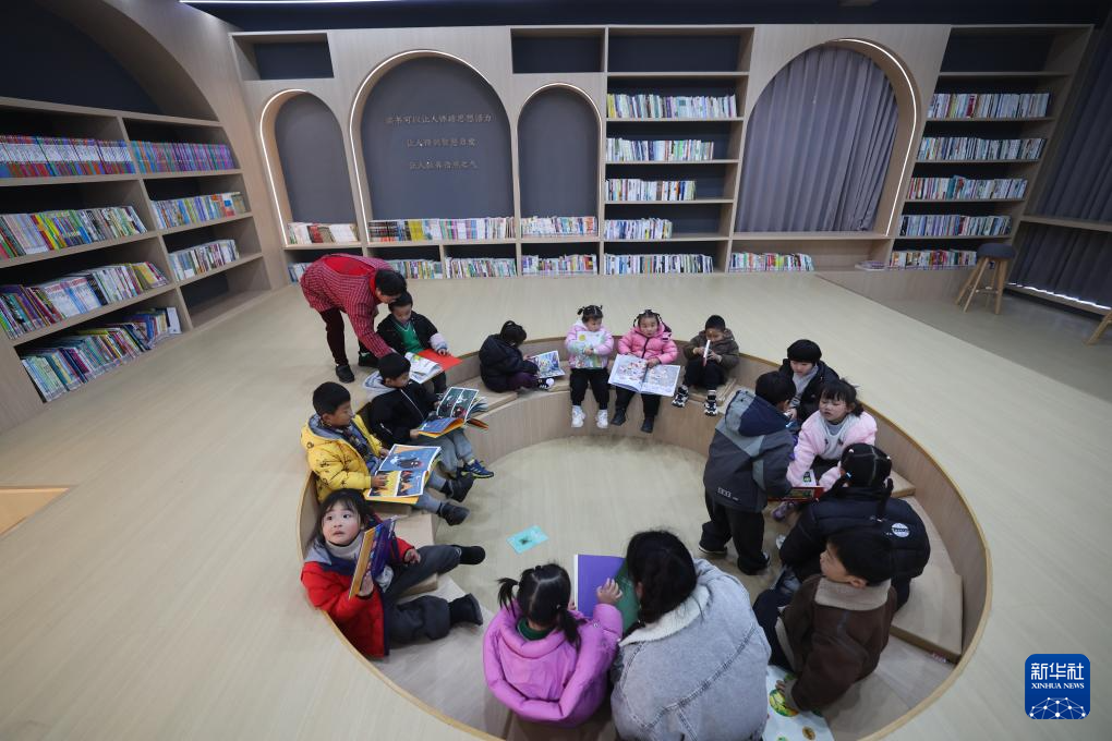 12月28日,在刚刚改造完成投入使用的诸暨市姚江镇山汀村渔山书院内,孩子们在老师的陪伴下读书。该书院是由村里老屋改造而成的农家书屋,设有农家书屋阅览室、文化活动室等。