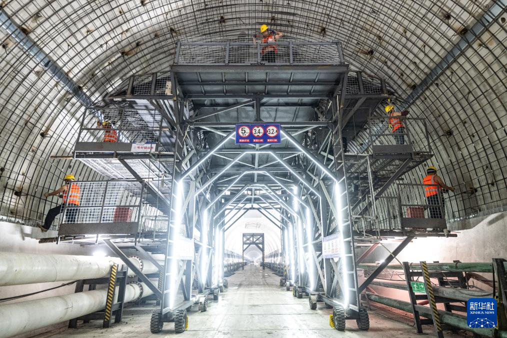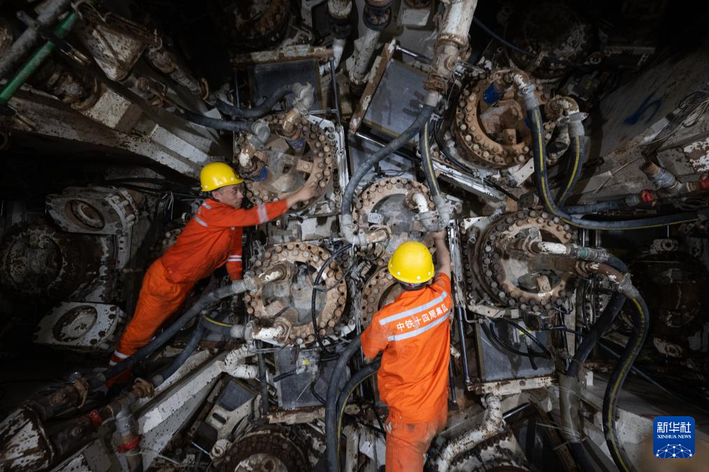 在位于长江水下70多米的武汉地铁12号线科普公园站至丹水池站区间越江隧道工程施工现场,中铁十四局工人日夜奋战,他们加紧施工,稳步推进工程建设。