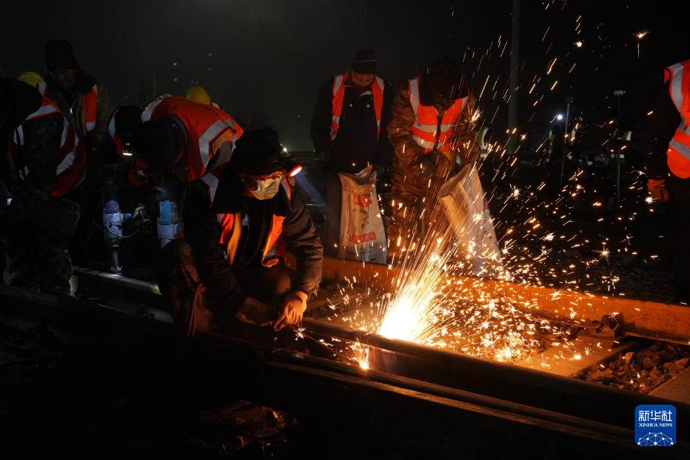 12月28日,建设者在包银高铁乌海站改造工程现场作业。