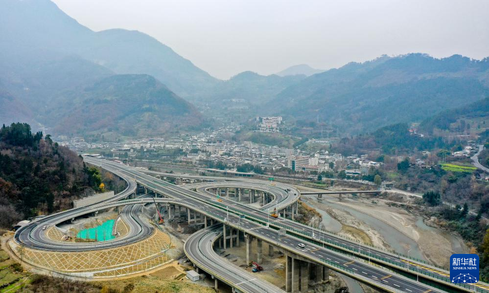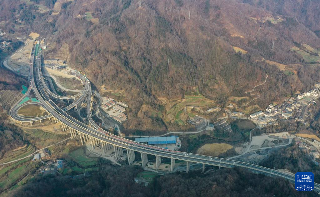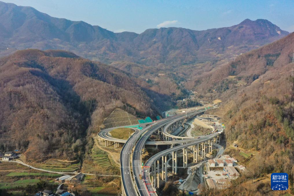 12月28日拍摄的四川省绵阳市平武县境内的九绵高速(无人机照片)。