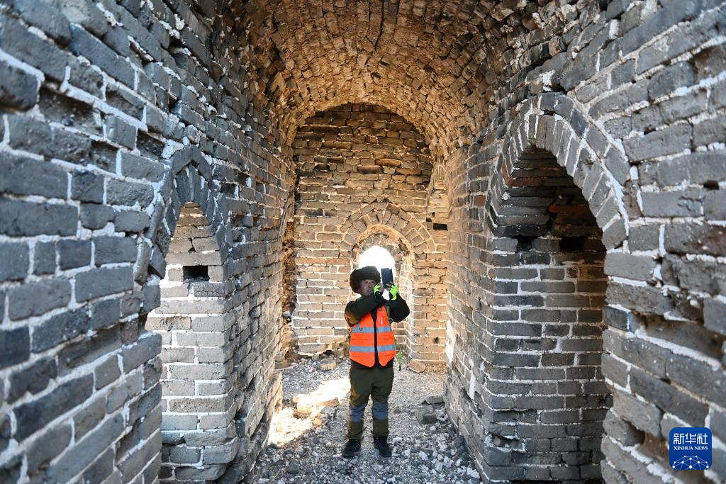12月28日,孟祥宝在长城一座敌楼内拍照,留下影像记录。