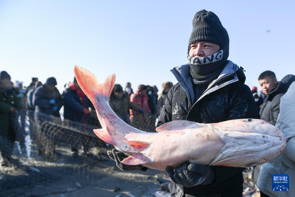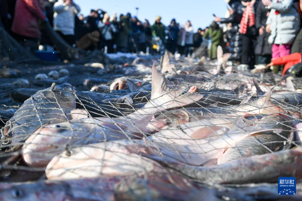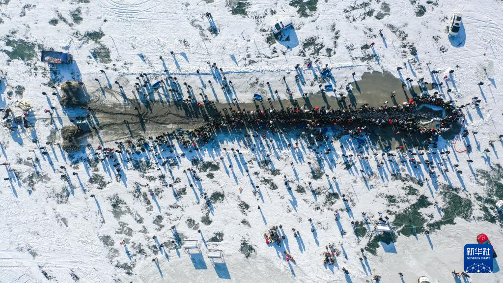 当日,查干湖第22届冰雪渔猎文化旅游节在吉林松原查干湖冰面上启幕。活动现场,来自全国各地的游客相聚观赏冬捕盛况,感受冰湖腾鱼的丰收喜悦。