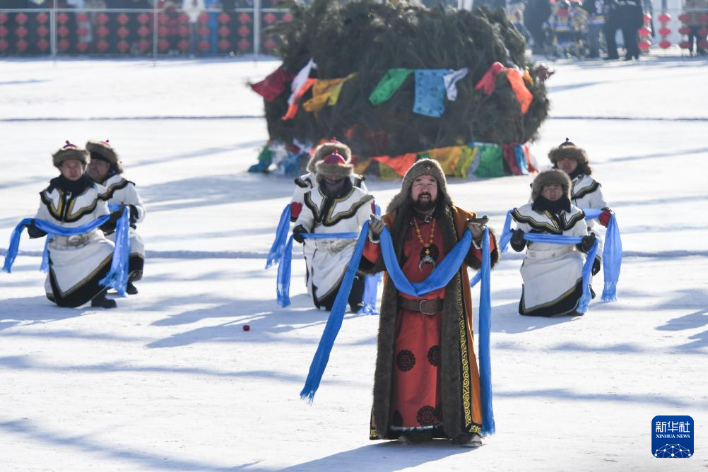 这是12月28日拍摄的查干湖冬捕“祭湖醒网”仪式。