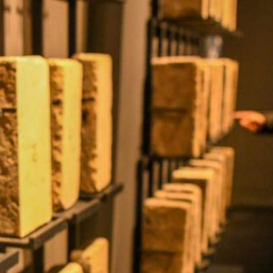 12月29日,在丝绸之路·长城文化博物馆里,游客在了解建筑长城时用的砖石。