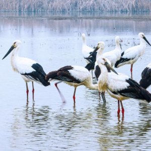 近日,数十只有“鸟类大熊猫”之称的东方白鹳来到合肥市肥东县长临河镇十八联圩生态湿地休憩觅食,构成一幅美丽的生态画卷。
