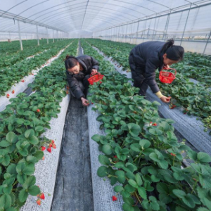 近年来,建德草莓实现新品种的突破,通过“平台直供、电商直播、基地采摘、社区团购、农批兜底”的销售体系,延伸产业链、优化供应链、提升附加值。如今,浙江省建德市草莓产业规模已达到浙江最大、全国前三,已经成为富民增收特色产业。