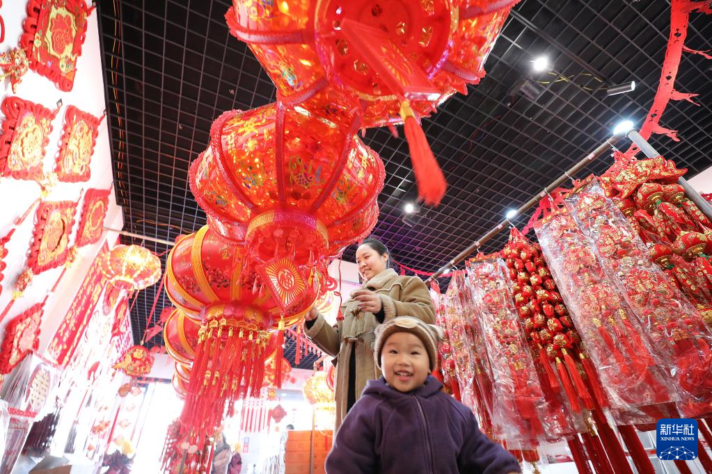 12月30日,人们在河南省焦作市温县赵堡镇年画市场选购红灯笼。