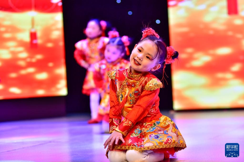12月30日,在浙江省湖州市德清县雷甸镇社区教育中心,小朋友在迎新年活动中表演节目。