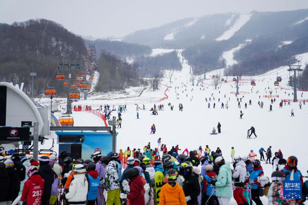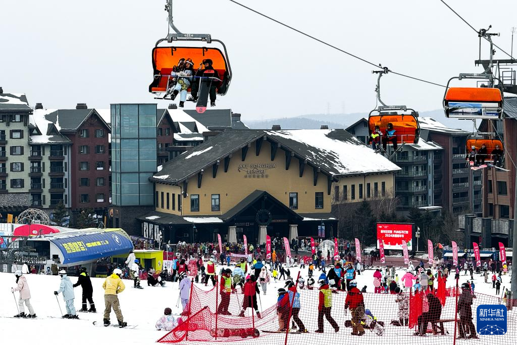12月30日,滑雪爱好者在吉林省吉林市万科松花湖度假区滑雪。