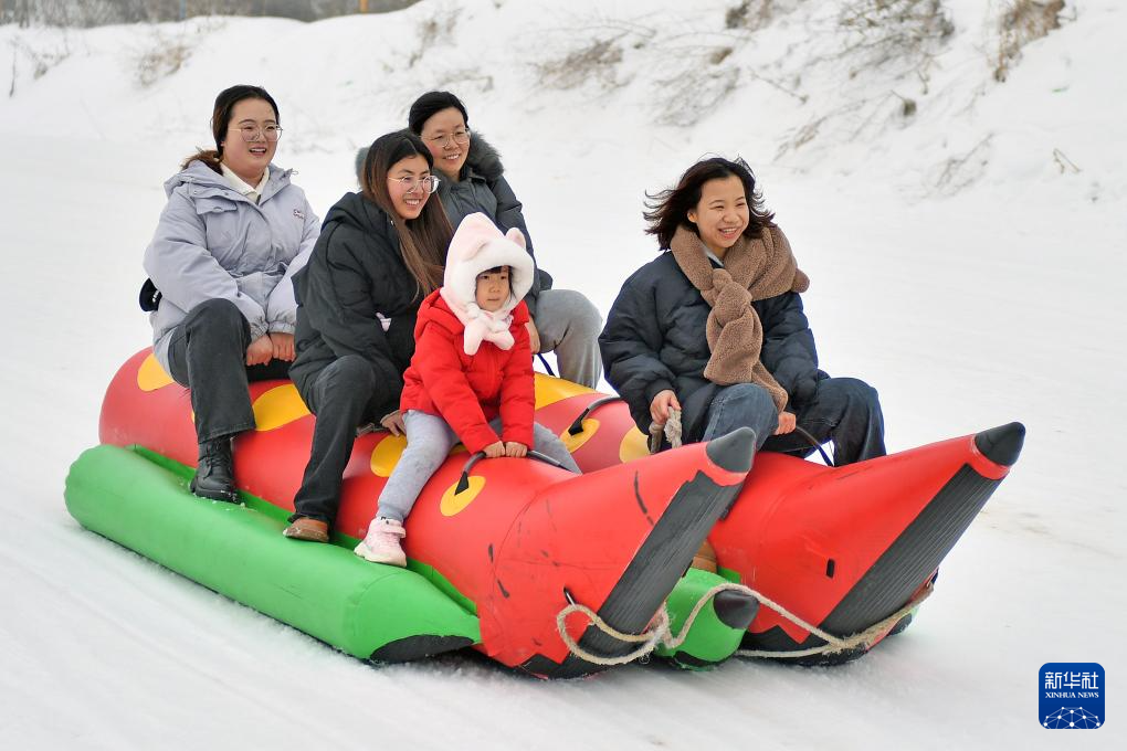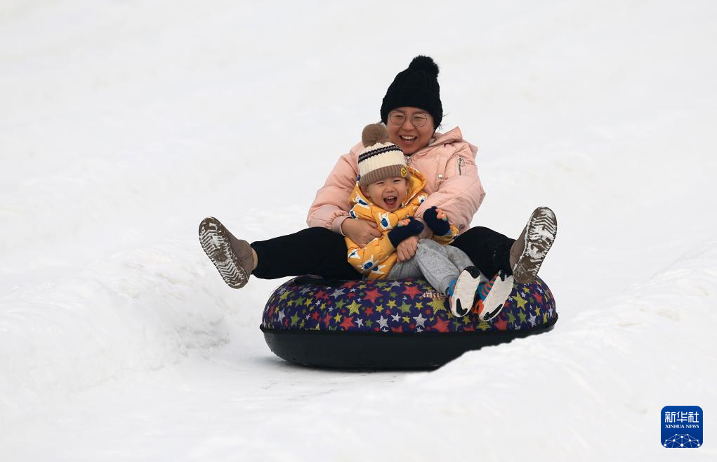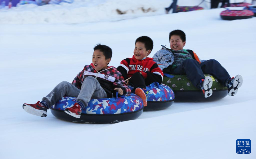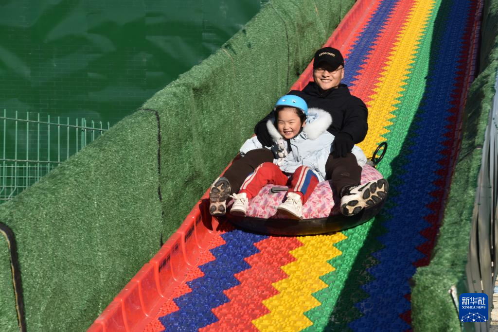 12月30日,游客在河北省石家庄市正定县冰雪嘉年华玩雪圈。