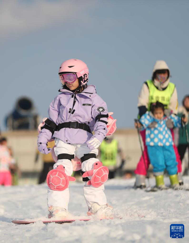 12月30日,小朋友在甘肃省定西市安定区一处滑雪场玩耍。
