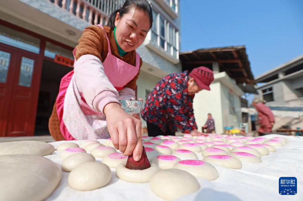 12月30日,贵州省黔东南苗族侗族自治州岑巩县注溪镇六部屯村村民在制作糯米糍粑。