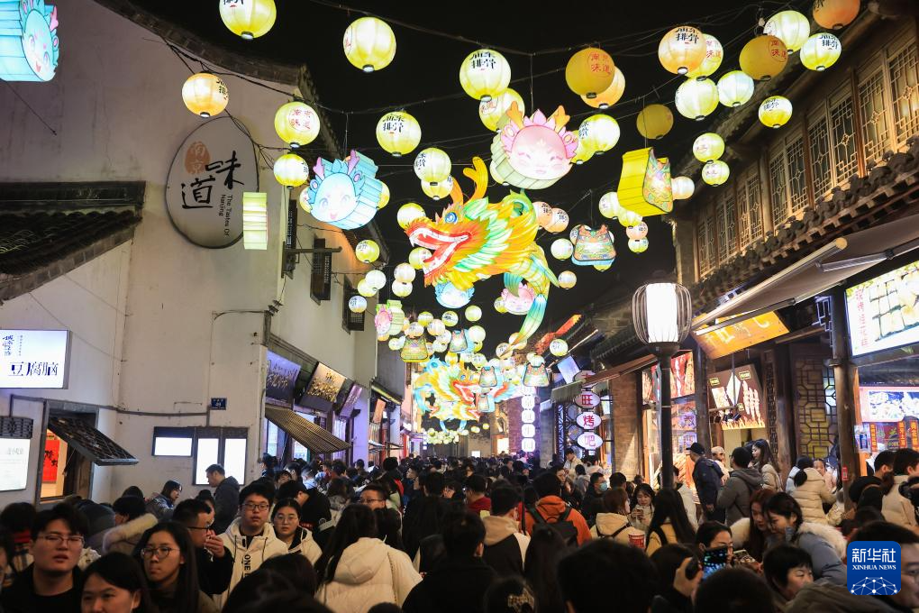 12月30日,游人在江苏省南京市老门东景区赏灯游览。