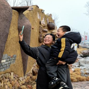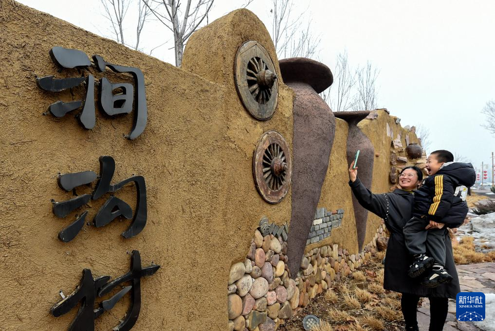 12月29日,游客在邯郸市复兴区东高河村游玩拍照。