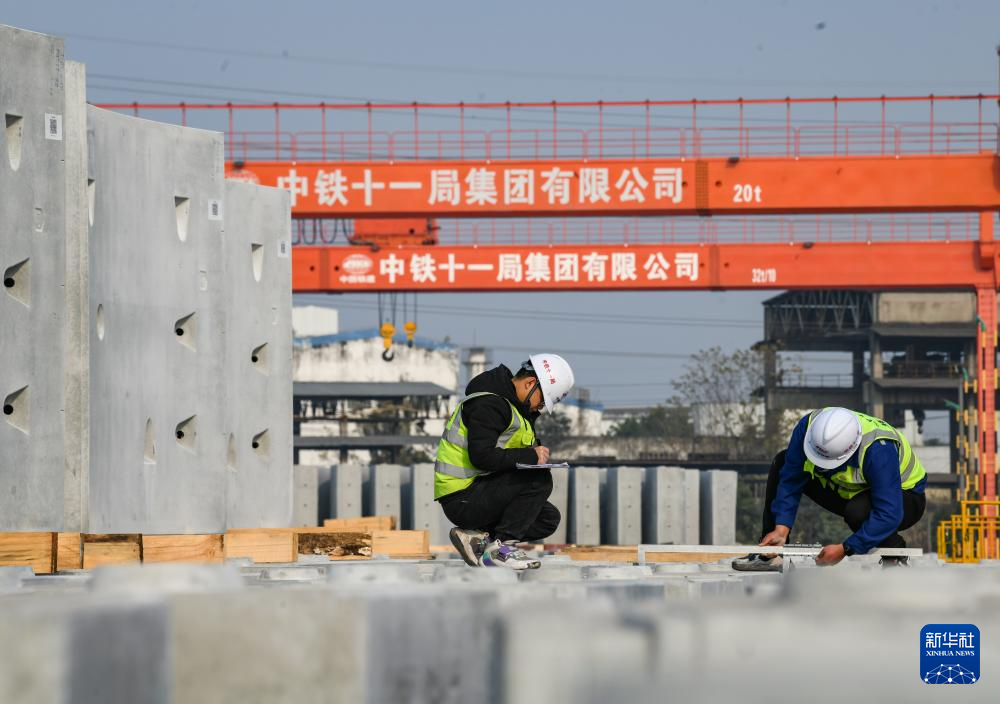 12月30日,在成渝中线高铁青白江管片厂,中铁十一局的技术工人对管片进行型式检验。