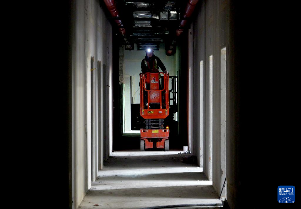 12月30日,在郑州市中心医院高新医院(一期)建设项目工地,中建七局工人驾驶升降车,准备安装消防管道。该项目建筑面积共17.59万平方米,预计于2025年交付使用。