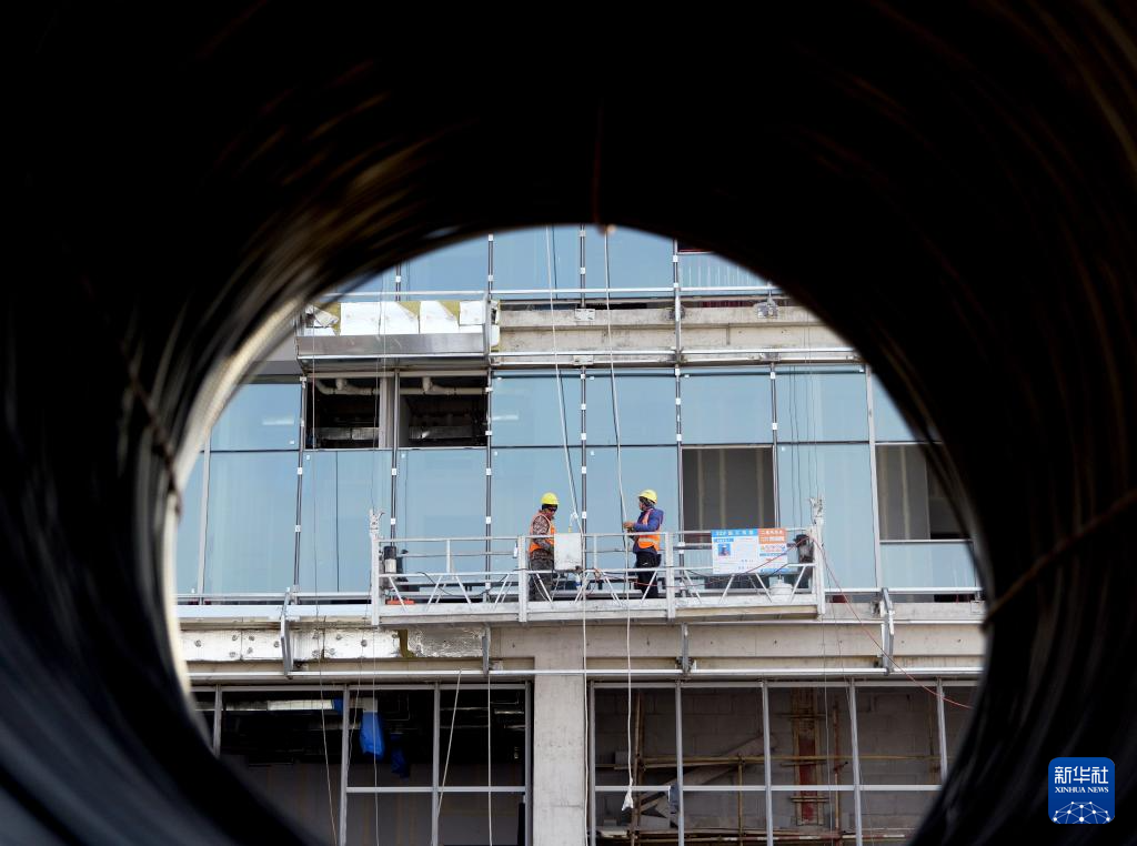 12月30日,在郑州市中心医院高新医院(一期)建设项目工地,中建七局工人在进行幕墙安装作业。该项目建筑面积共17.59万平方米,预计于2025年交付使用。